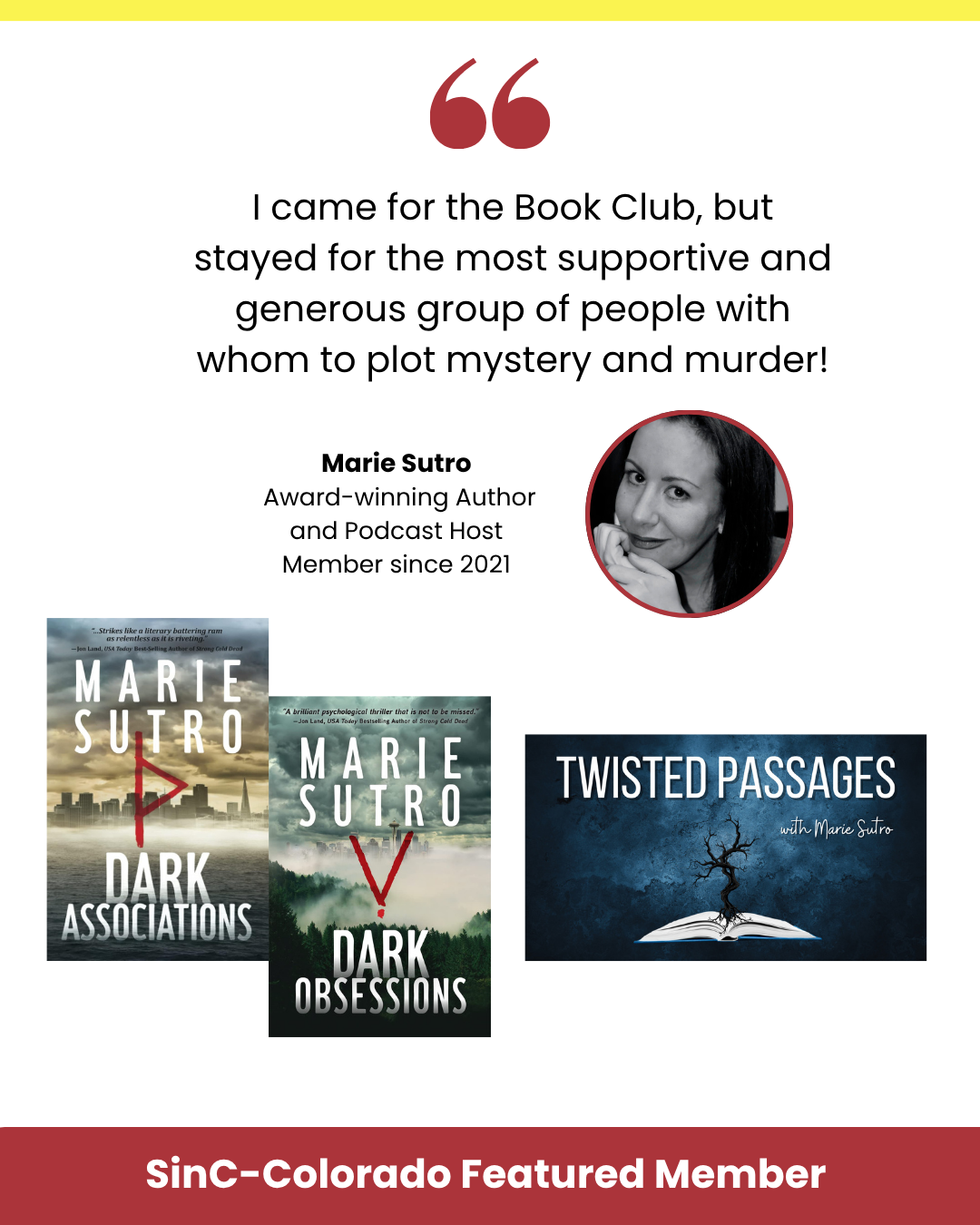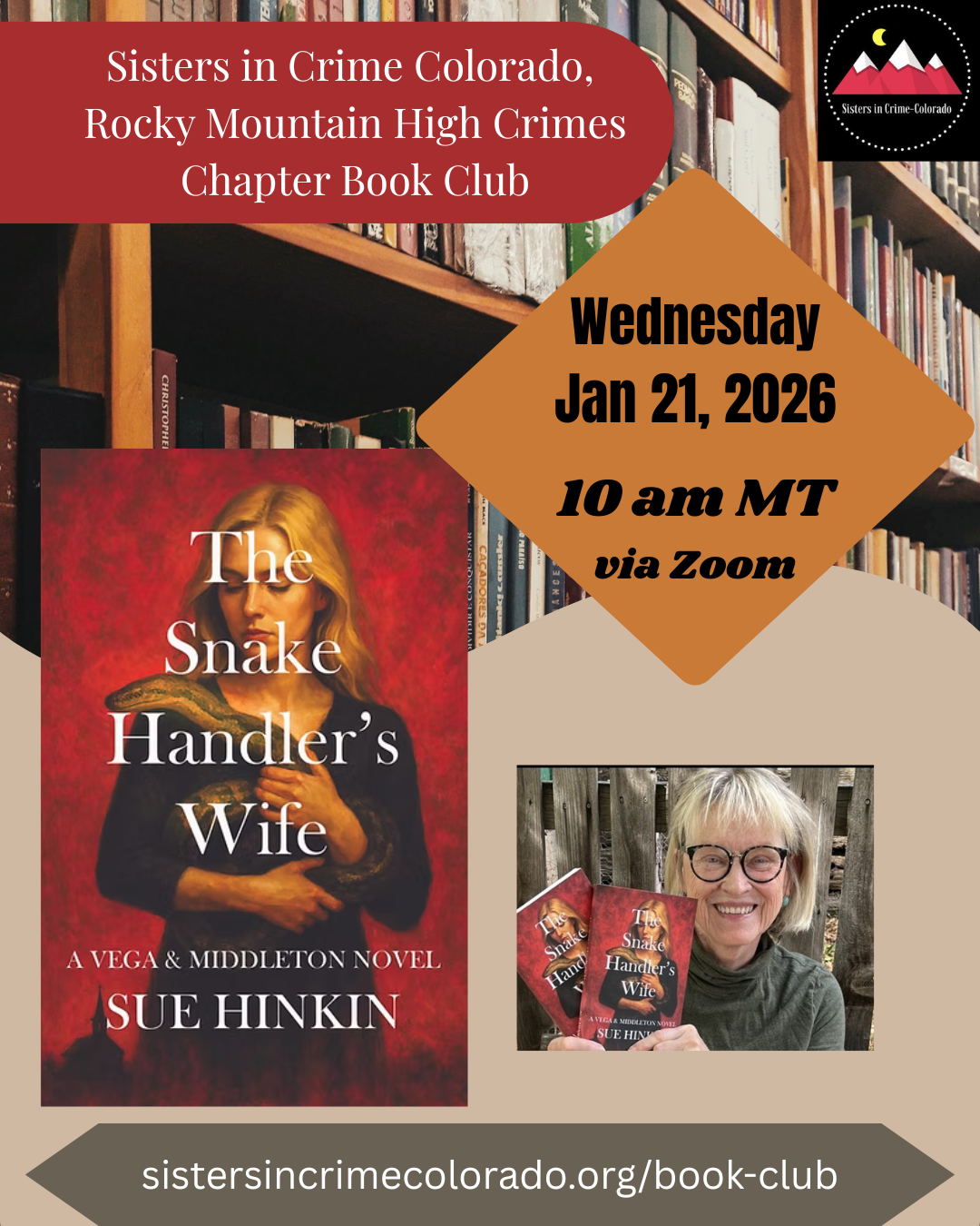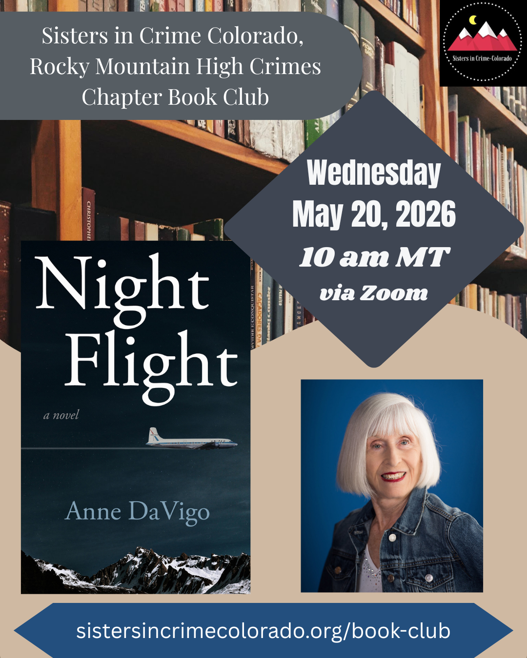 The Sisters in Crime-Colorado Book Club meets on Zoom from 10 a.m. to noon the third Wednesday of the month. Each online session is devoted to a book written by one of our members.