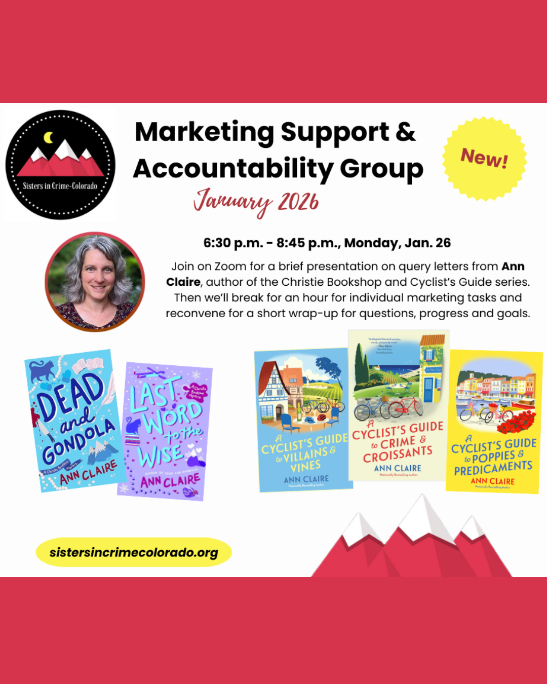 Our Marketing Support Group meetings are for chapter members only. Location details and Zoom links are shared on our closed chat Groups.io platform. Have questions or want to suggest a topic? Email us!