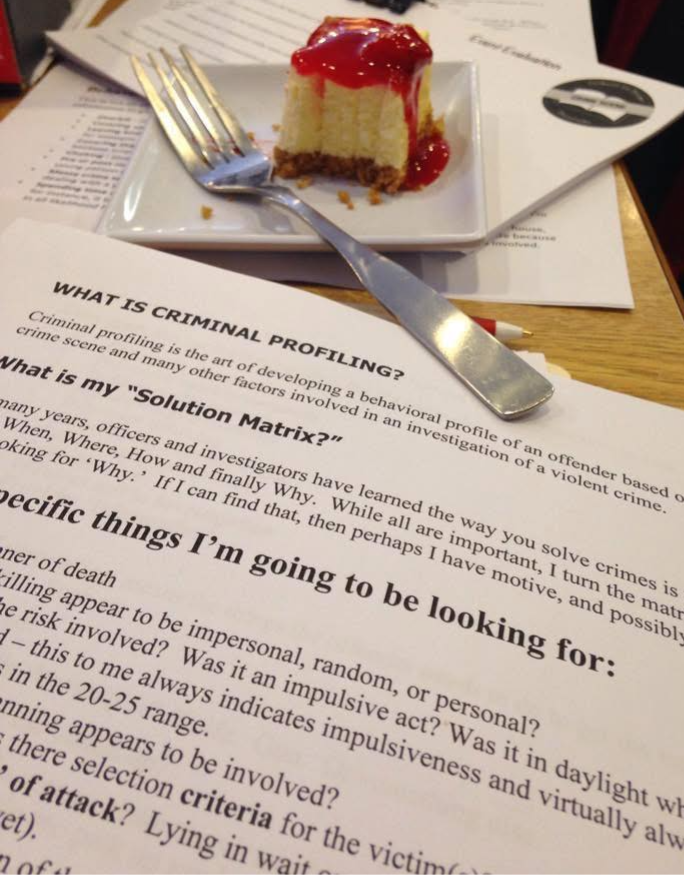 Our quarterly events are our biggest events of the year, when we gather in person for a day of speakers on the writing craft and some aspect of the criminal justice system. It's also time for us to catch up as a chapter and enjoy hanging out together.