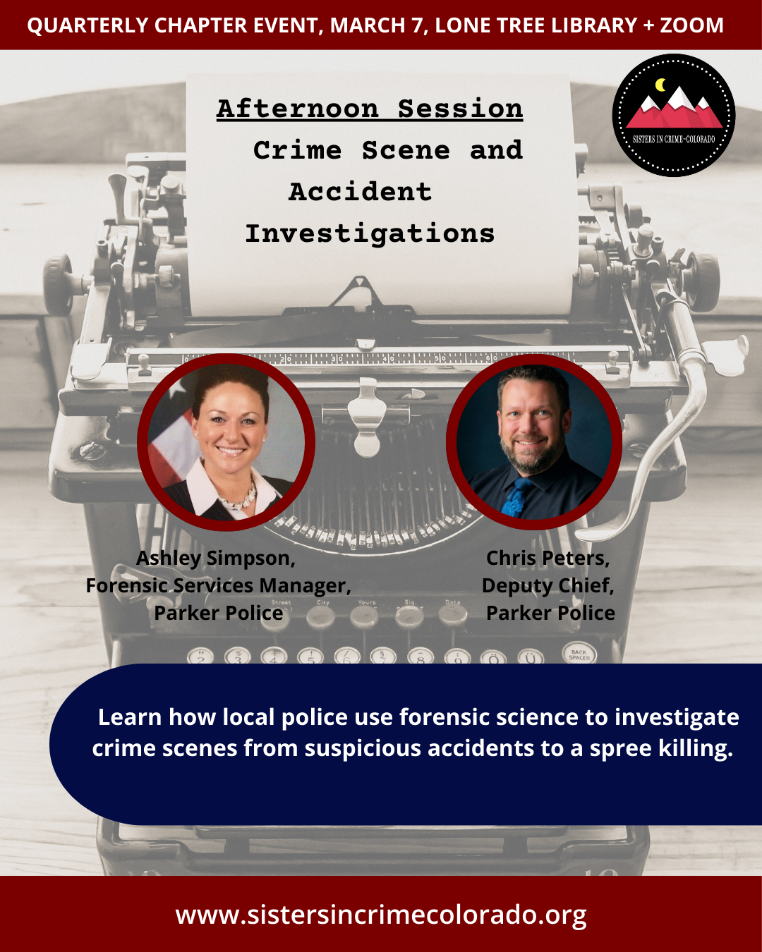 We welcome members and curious non-members to our meetings four times a year. There is no charge and it's a perfect opportunity to check out our group, see the kinds of programs we offer and have fun with like-minded crime-minded writing types!